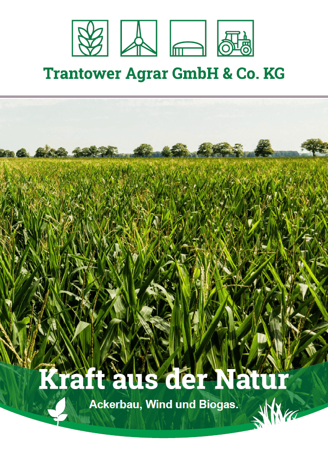 Wir, die Trantower Agrar GmbH & Co. KG, sind ein familiengeführtes Unternehmen im Peenetal, das auf nachhaltigen Ackerbau, Windenergie und Biogas spezialisiert ist. Mit modernen Technologien setzen wir auf Energieeffizienz und Umweltschutz. Unser Ziel ist es, durch erneuerbare Energien und verantwortungsvolle Landwirtschaft einen Beitrag zu einer nachhaltigen Zukunft zu leisten.